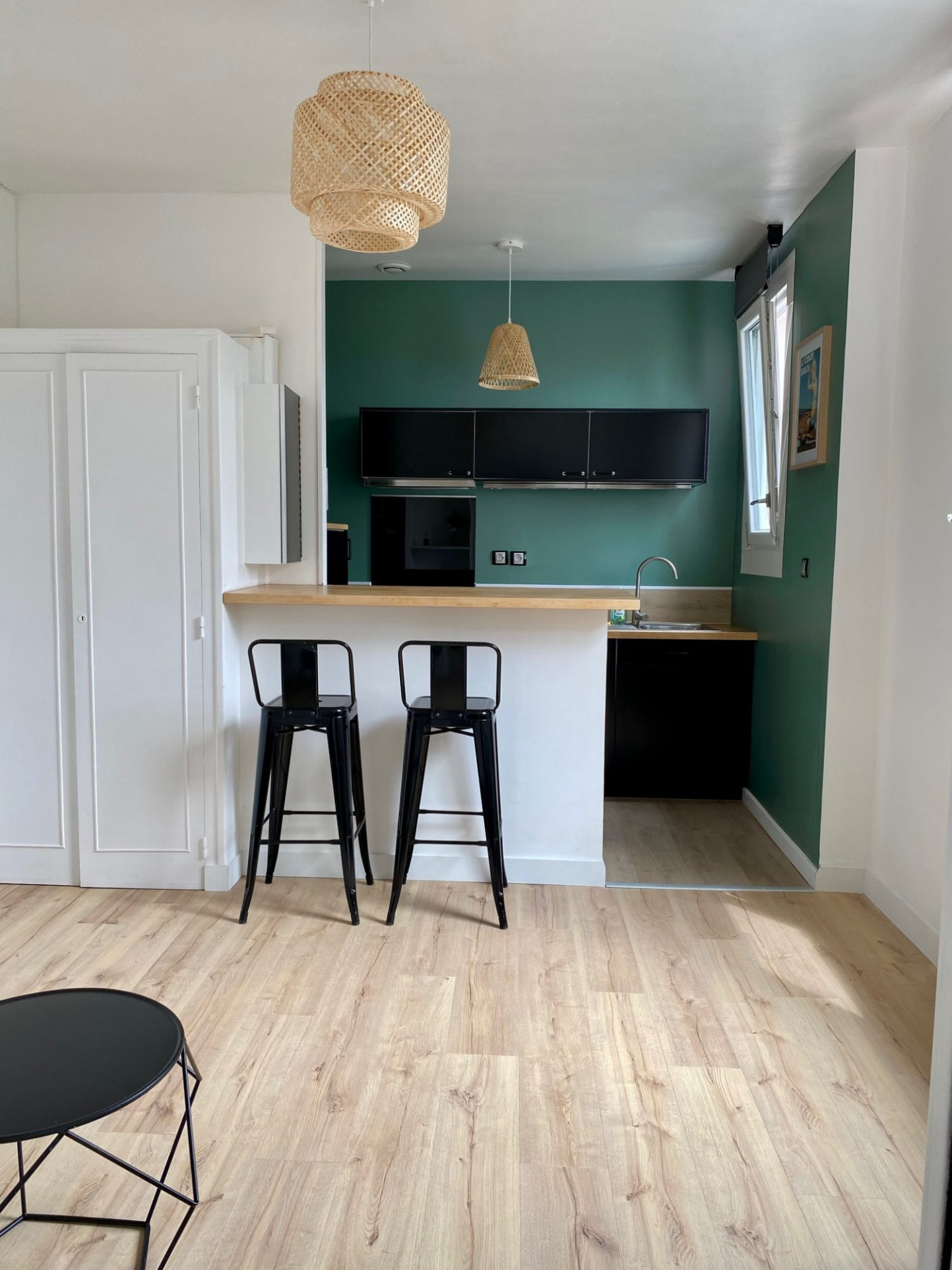 La Baule plein centre : au deuxième étage d?une copropriété rénovée et en très bon état, agréable T2 meublé idéalement situé, à 200m de la mer, de la gare et des commerces et du marché. L?appartement est agencé ainsi : - Une jolie pièce de vie à la décoration minimaliste et soignée, - Une cuisine américaine aménagée et équipée - Une chambre avec rangements - Une salle d?eau (douche à l'italienne) L'immeuble dispose d'un local vélo. Les charges incluent l'eau froide. L'électricité est à la charge du locataire.