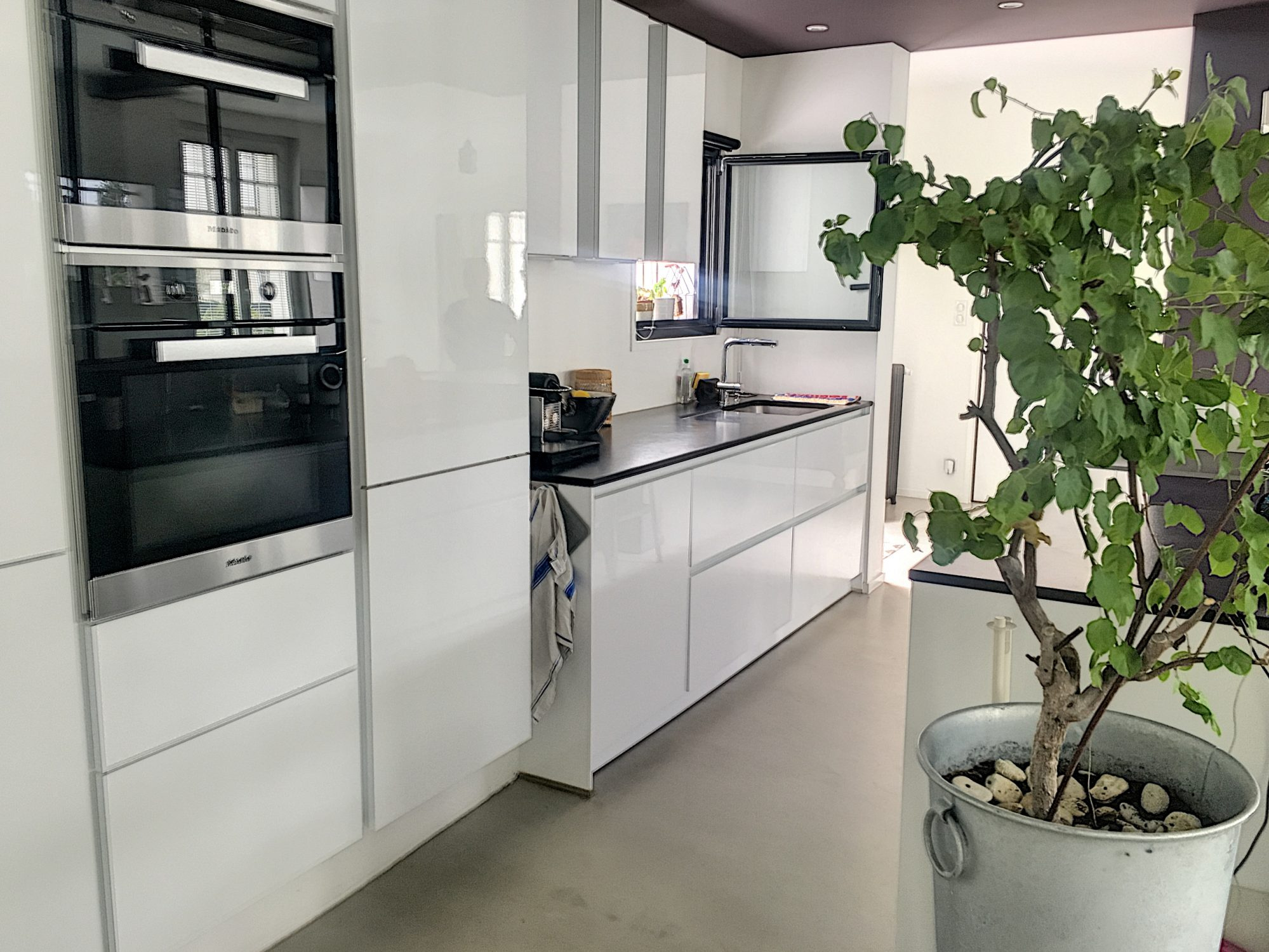 Superbe maison des années 50 entièrement rénovée, avec beaucoup de goût et de beaux matériaux. Elle comprend : - au rez-de-chaussée : une cuisine aménagée et équipée ouverte sur un vaste salon/séjour, deux suites parentales avec salles d'eau et WC séparés et un bureau - au sous-sol : une grande chambre avec possibilité de salle de bain. Deux caves et un garage complète ce bien. Grand jardin ensoleillé et arboré avec terrasse.