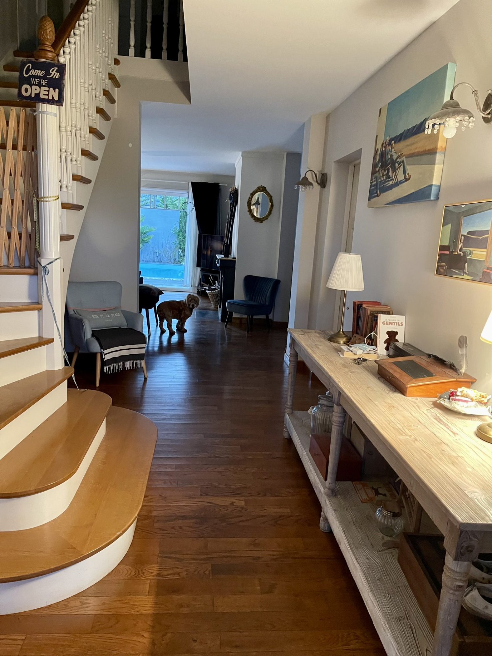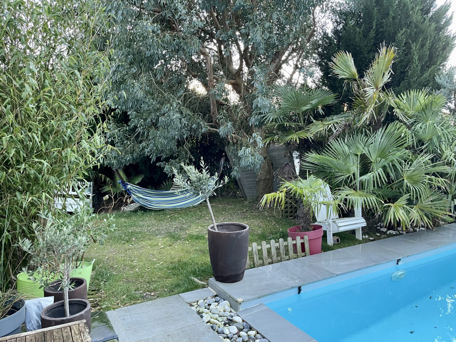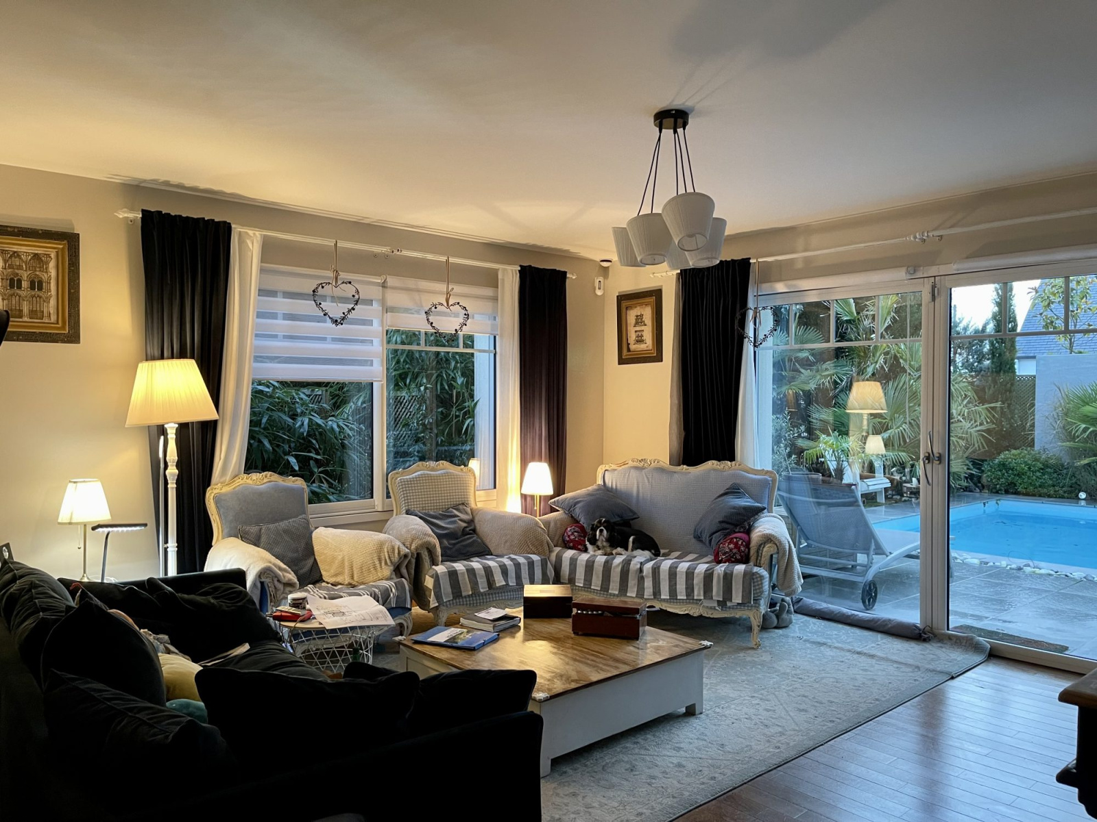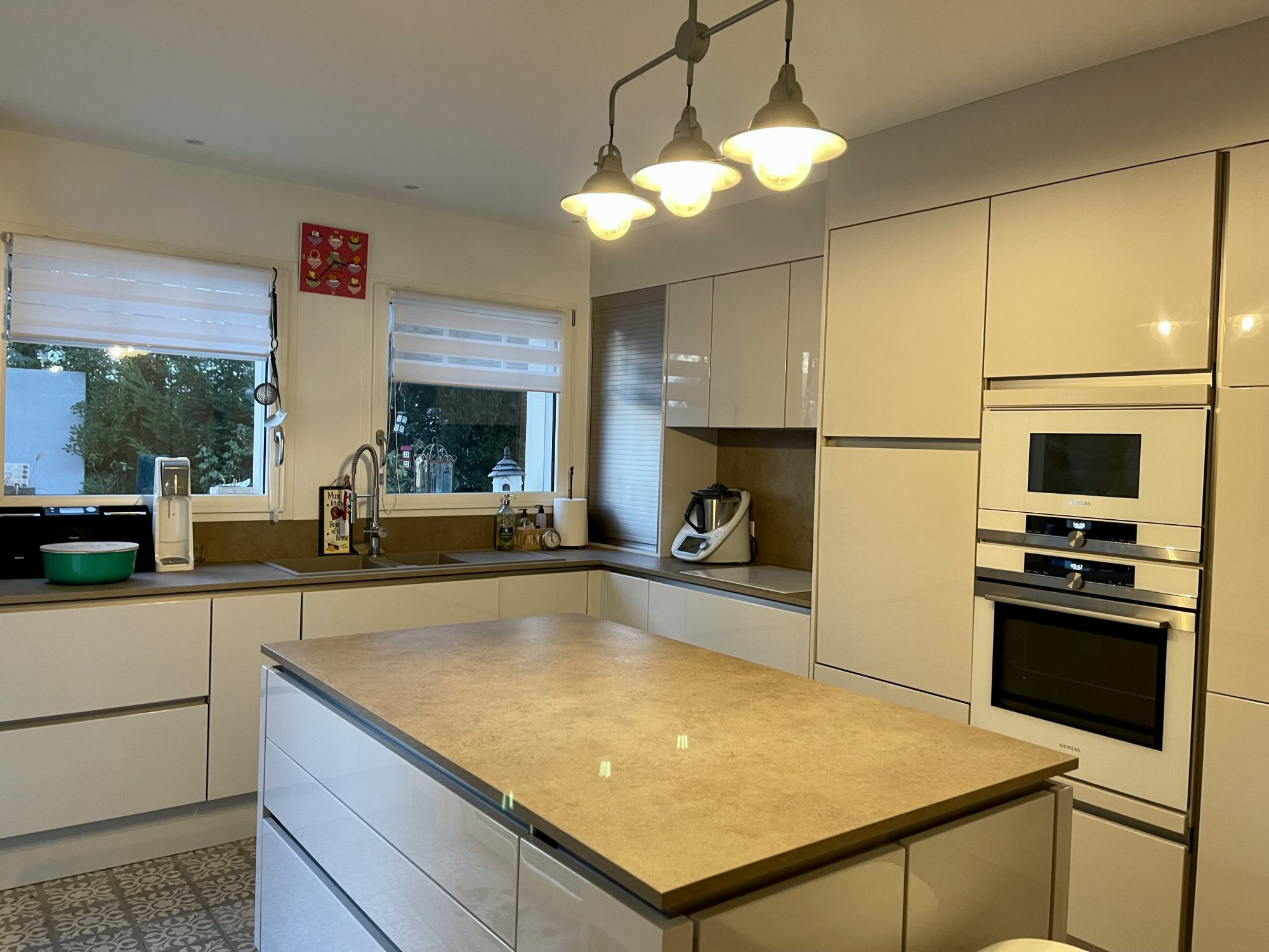 Grande et belle maison d'environ 180 m2 avec piscine à débordement, construite en 2018, sur un terrain aménagé et arboré de 1350 m2, dans le hameau de Brezéan à Guérande. La maison offre au rez-de-chaussée : - deux salons avec chacun sa cheminée, donnant sur le jardin, - une salle à manger, - une magnifique cuisine semi-ouverte (verrière) parfaitement équipée. - un bureau, - un appartement parental : imposant dressing en entrée, chambre, salle de bains , - un WC. A l'étage : - quatre chambres autour du palier, - un WC - - une salle de bains. Un garage double, un garage à vélo, des espaces couverts et une piscine à débordement viennent la compléter. La maison est en excellent état, et les prestations sont de très grande qualité (parquet en bois massif). Chauffage par aérothermie.