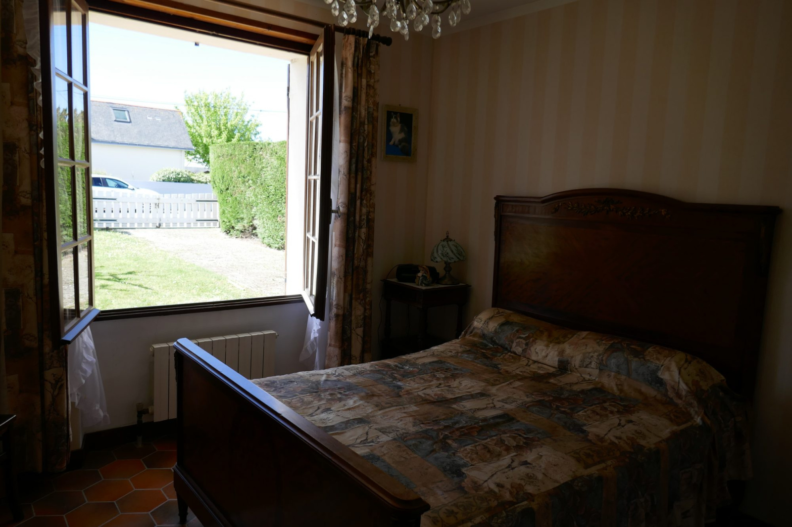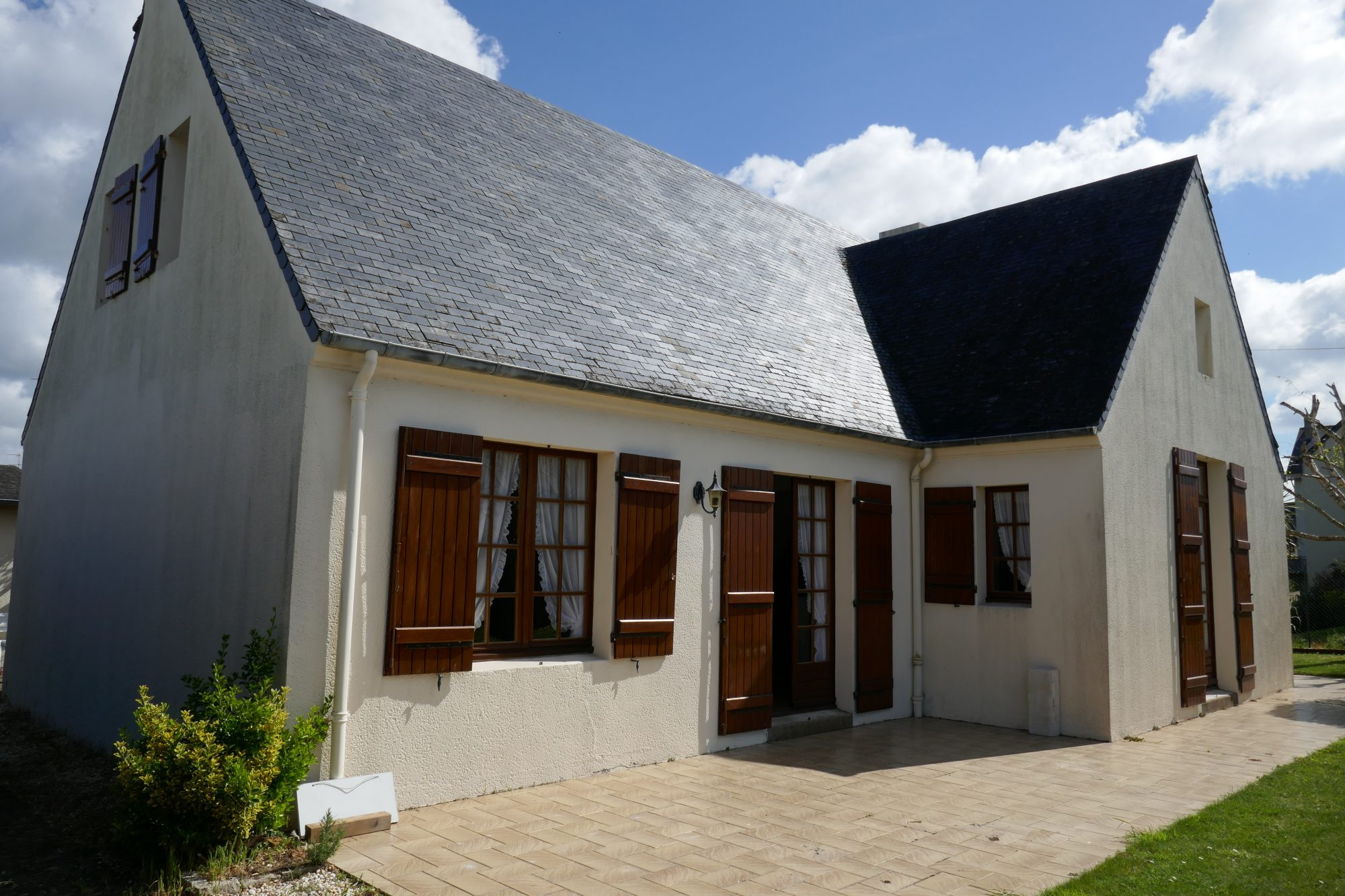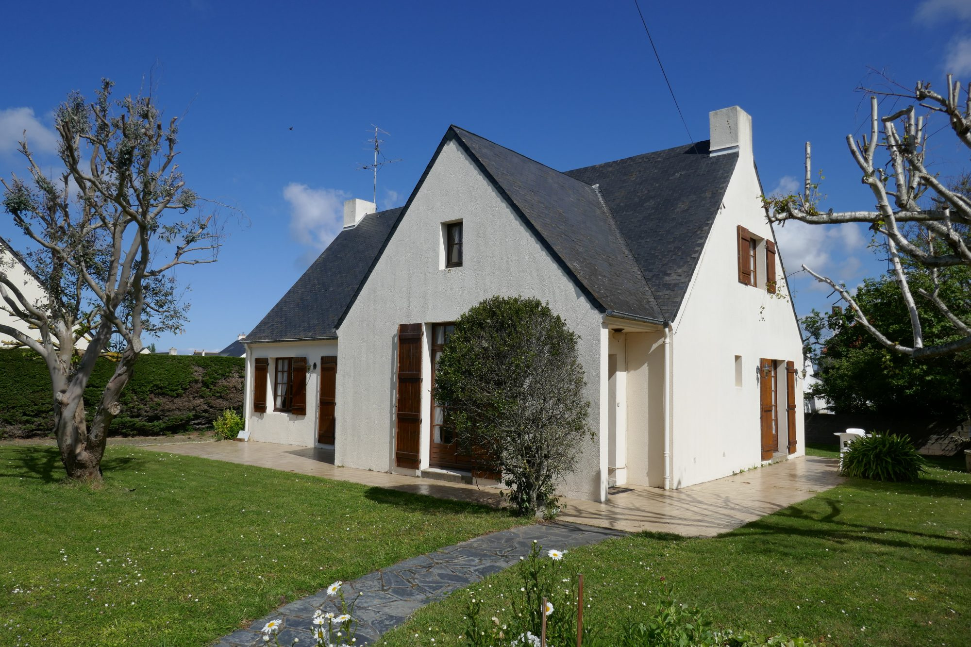 BATZ SUR MER MAISON 5 PIECES SUR JARDIN ARBORÉ DE 851 m2 Ce bien se compose : - au rez-de-chaussée : une entrée donnant sur le séjour/salon cathédrale avec cheminée, une cuisine aménagée et équipée donnant sur la terrasse, un dégagement avec placards, deux belles chambres avec placards, une salle de bain avec douche, un WC indépendant et un local technique avec chaudière - à l'étage : une mezzanine desservant une chambre double et une salle d'eau avec WC Ce bien dispose d'un garage double, d'un abri de jardin et d'un puits avec arrosage automatique. Honoraires agence inclus (4.76%) à la charge de l'acquéreur. Prix net vendeur : 380 000€