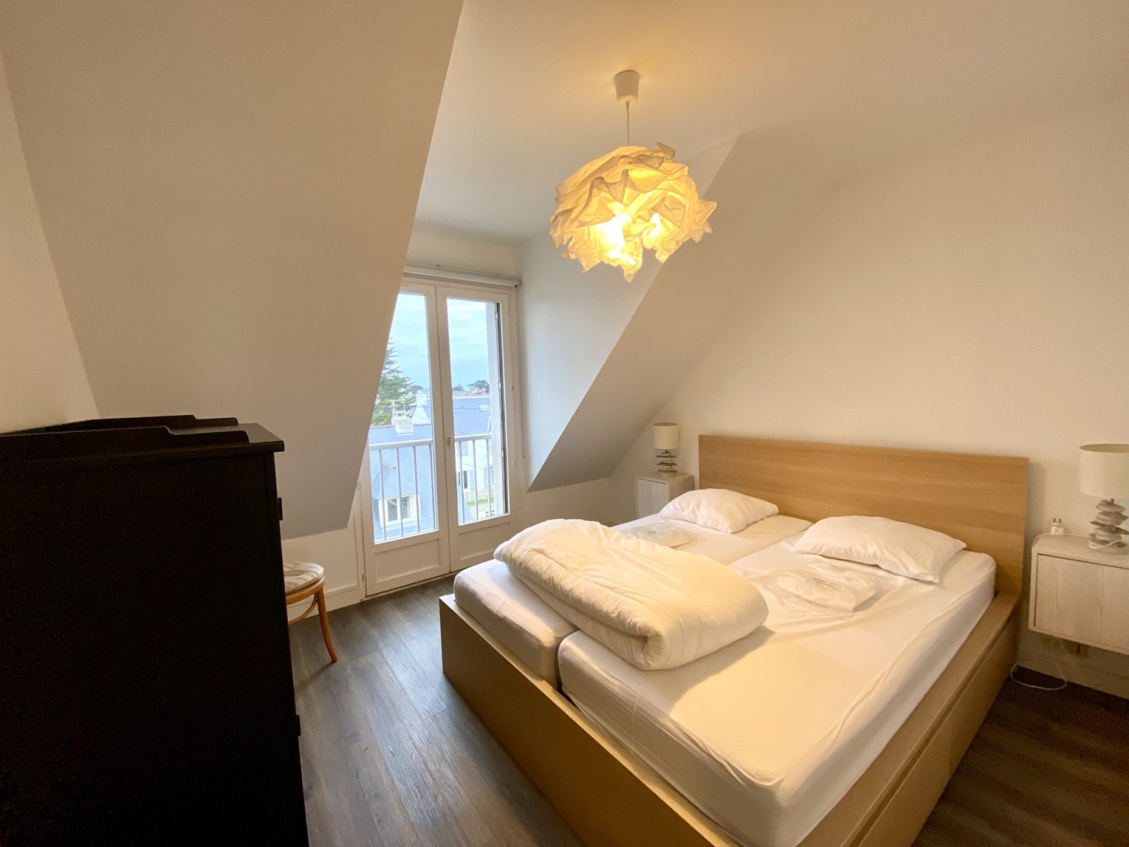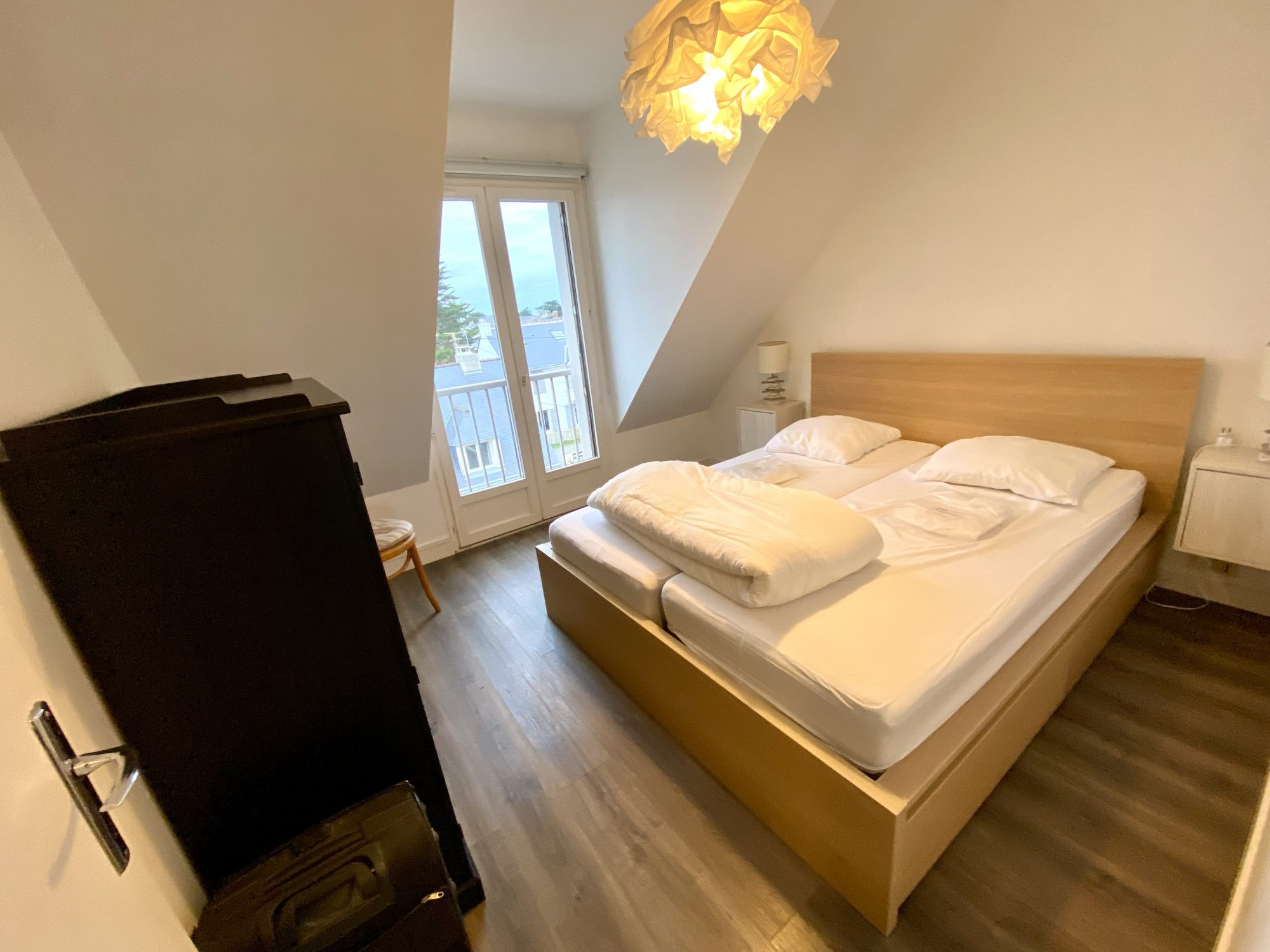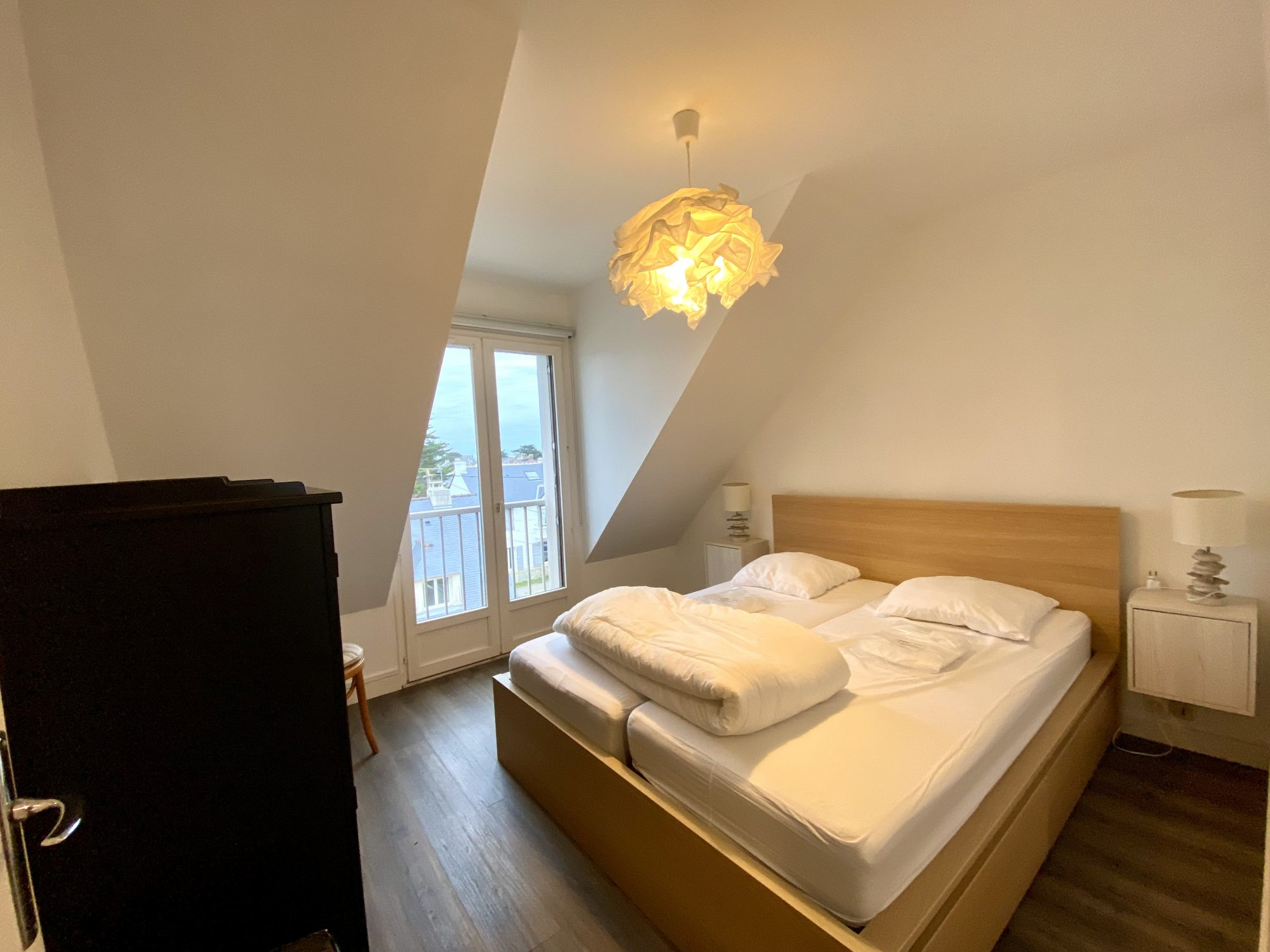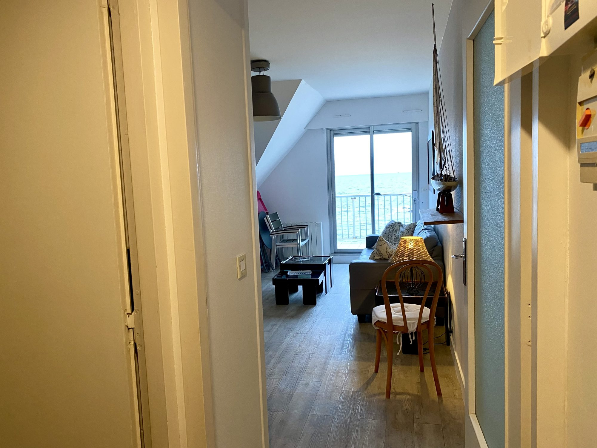 Rare à la vente. Le Croisic plage Port Lin. Magnifique appartement trois pièces, de 43 m2 avec 4 m2 de terrasse face mer sans vis à vis. Belle pièce de vie avec cuisine aménagée et équipée Deux chambres Salle d'eau avec douche, WC Chauffage électrique Très belles prestations Troisième étage sans ascenseur Possibilité acquisition d'un parking dans la cour de l'immeuble ainsi que d'un studio contigu à l'appartement. (en vente dans notre agence) Anne de Méré 06 60 62 95 66