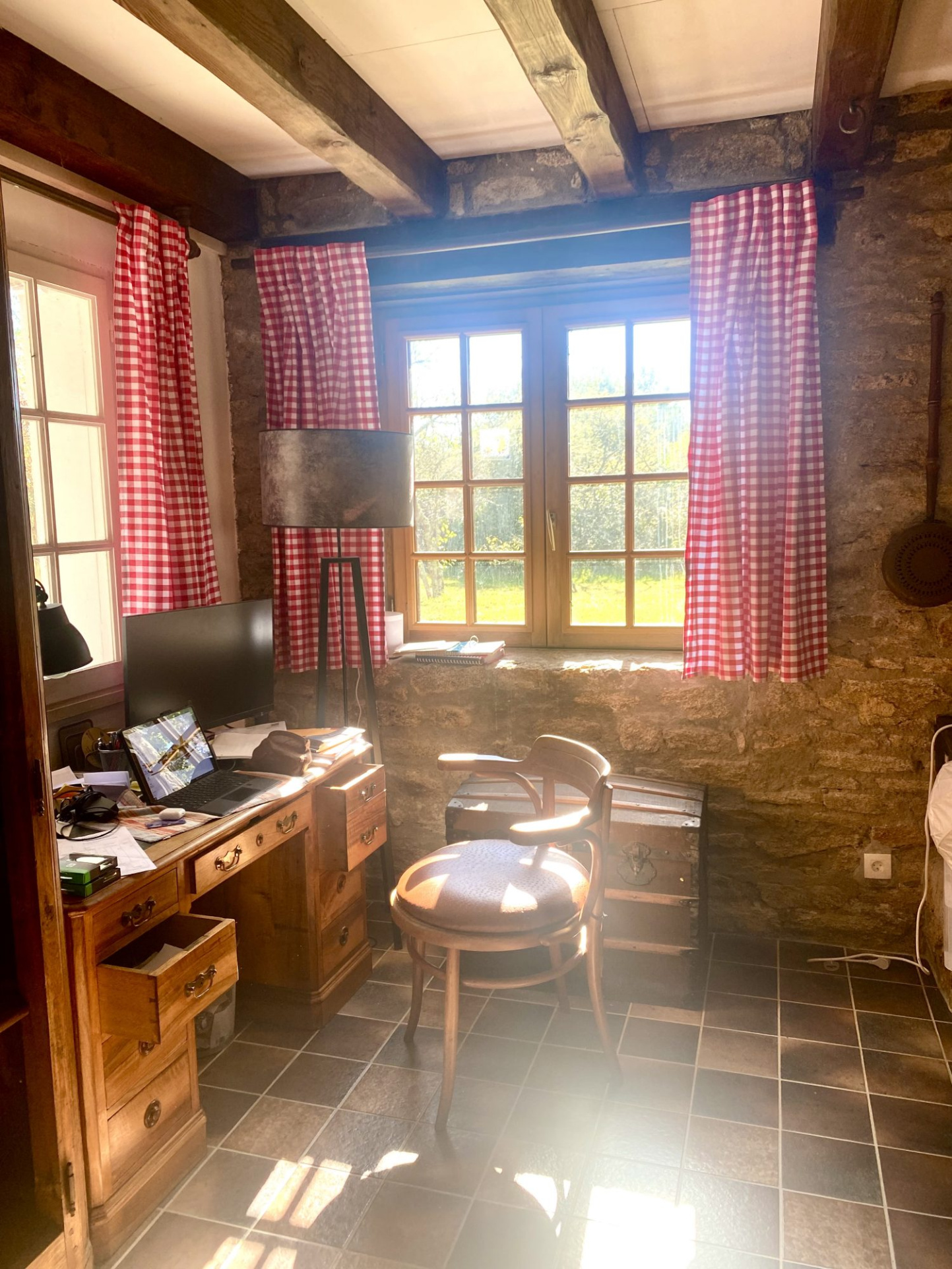 Beaucoup de charme pour cette maison de 1850, rénovée. Sur un terrain sans vis à vis, arboré, de 1800 m2