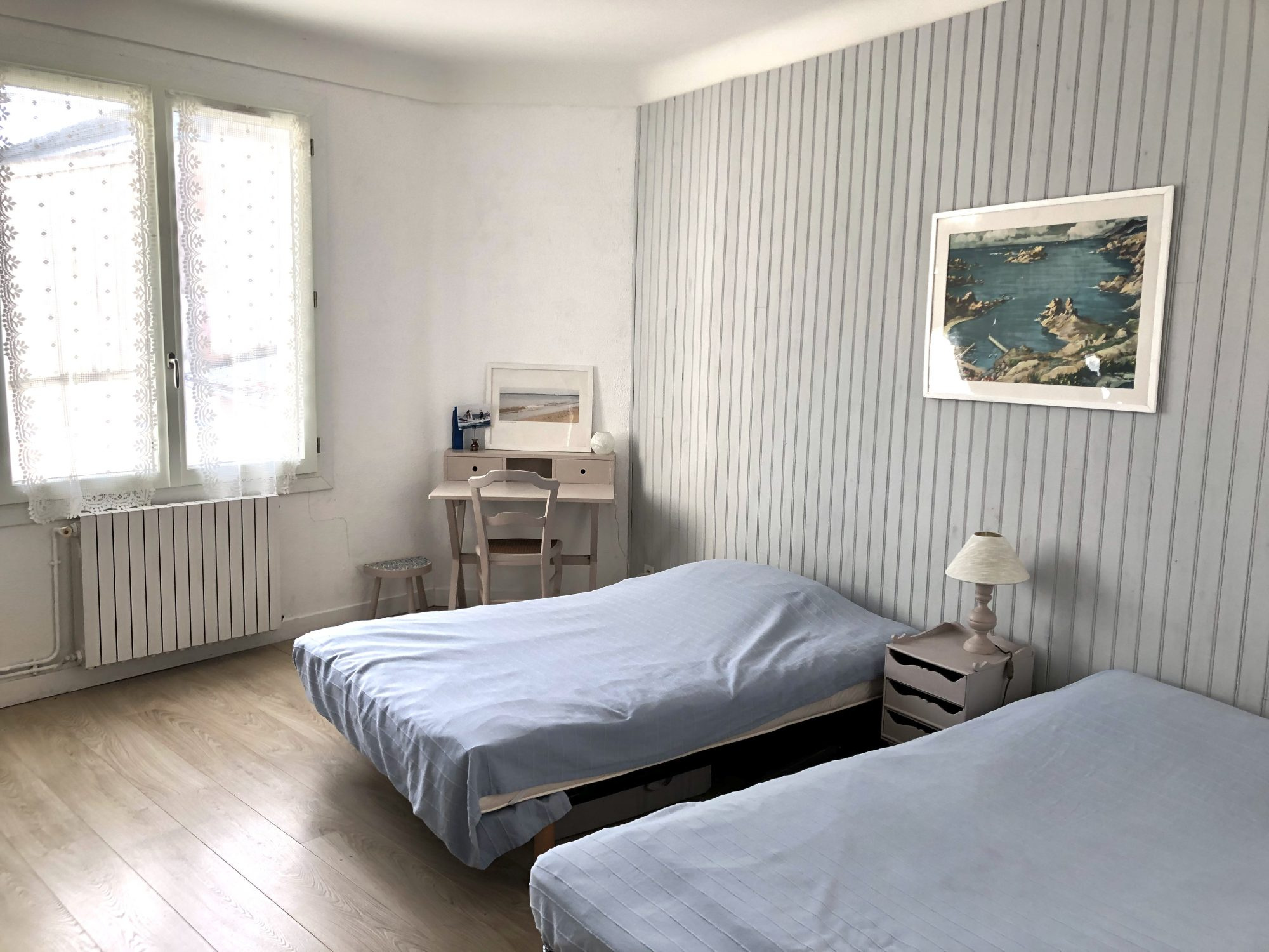 Marché, port, plage Tout à pied pour cet appartement au premier étage d'une maison en retrait de la rue Appartement avec beaucoup de charme, très lumineux Séjour, cuisine, 2 belles chambres dont une de 19m2 W.C. séparés, salle de bain. Terrasse de 12m2 Annexe à vélos