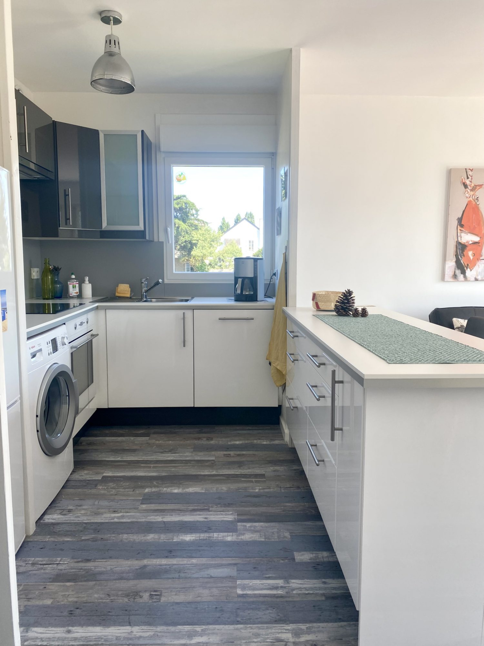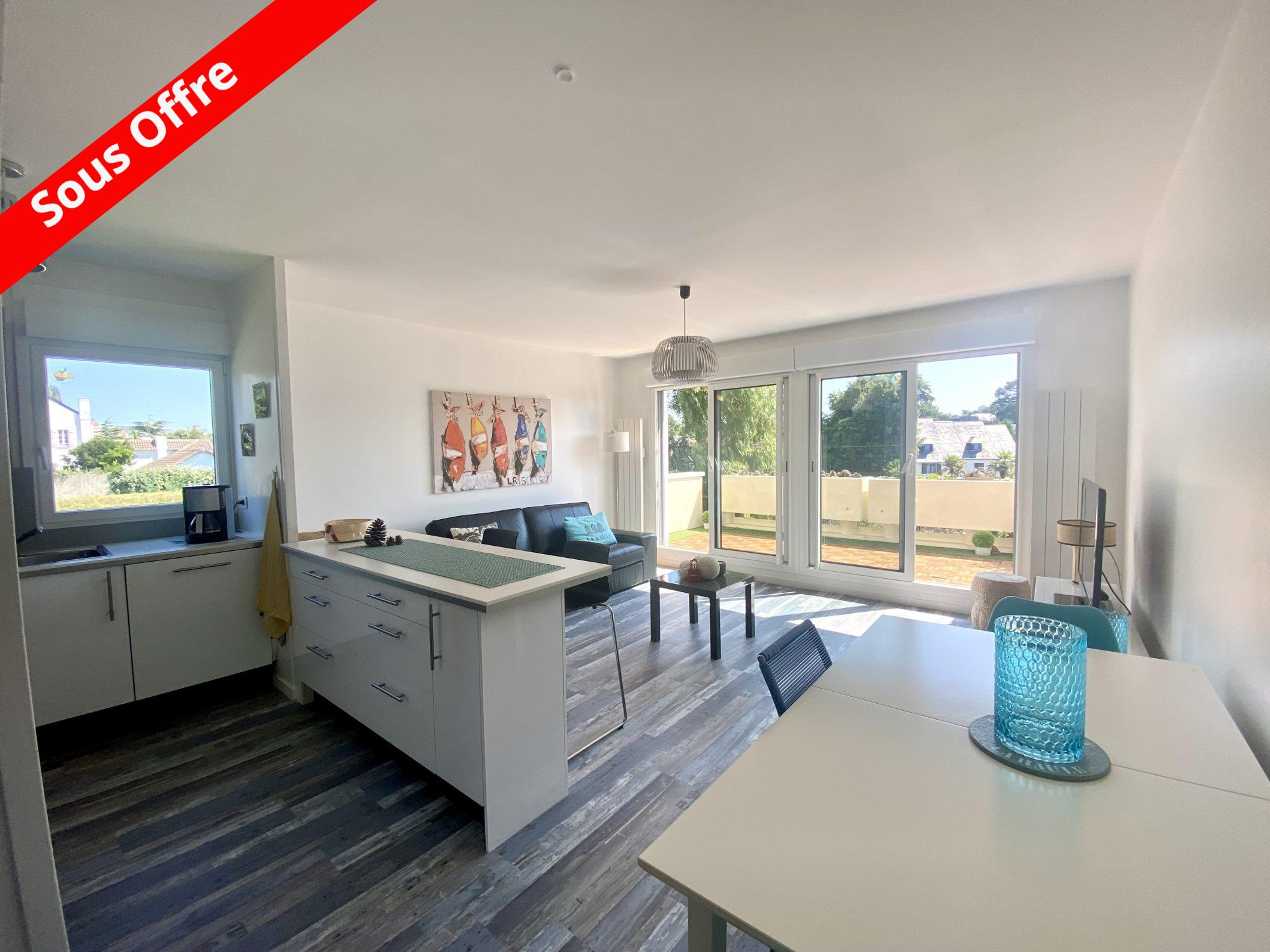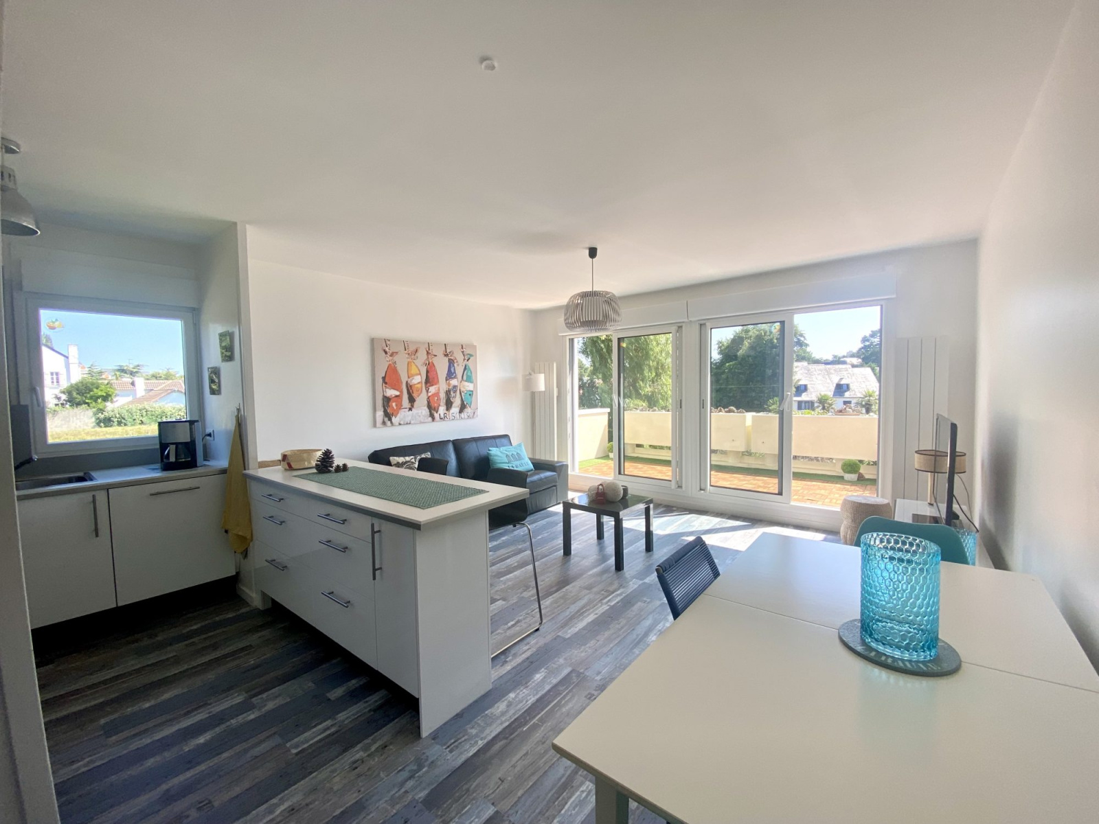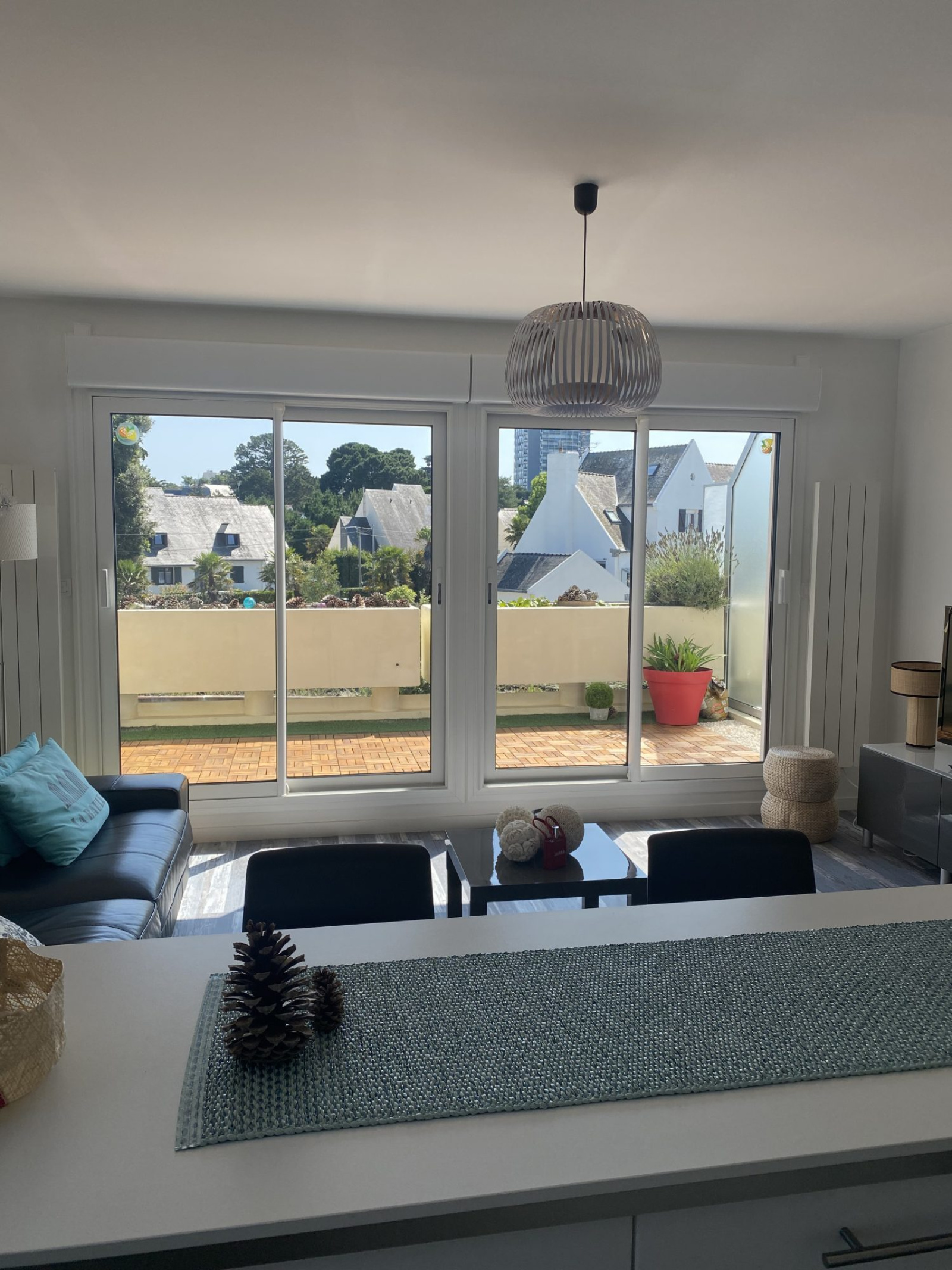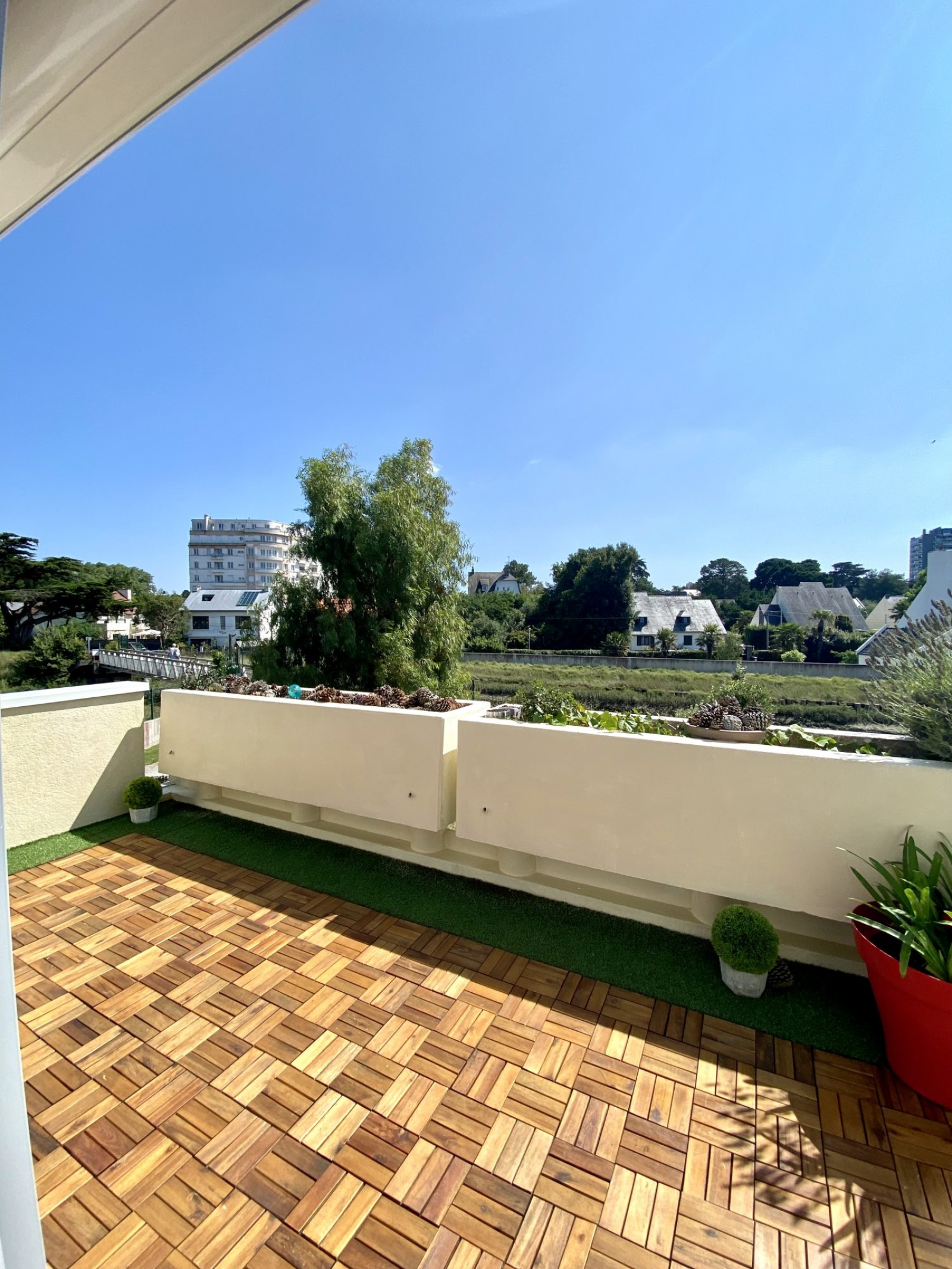 Splendide duplex traversant de 64 m², 4 pièces entièrement refait à neuf, au premier étage de la résidence de standing Les Hauts de La Baule sécurisée dans un beau parc très bien entretenu avec une piscine, située sur Guérande à la limite de La Baule, derrière l'hôtel Royal, à 10 minutes à pied du casino et de la plage. Terrasse de 9 m² orientée au sud, sans vis-à-vis . Grand séjour avec cuisine ouverte 3 chambres une salle d'eau (douche à l'italienne) un WC indépendant Faibles charges (140 € / mois)