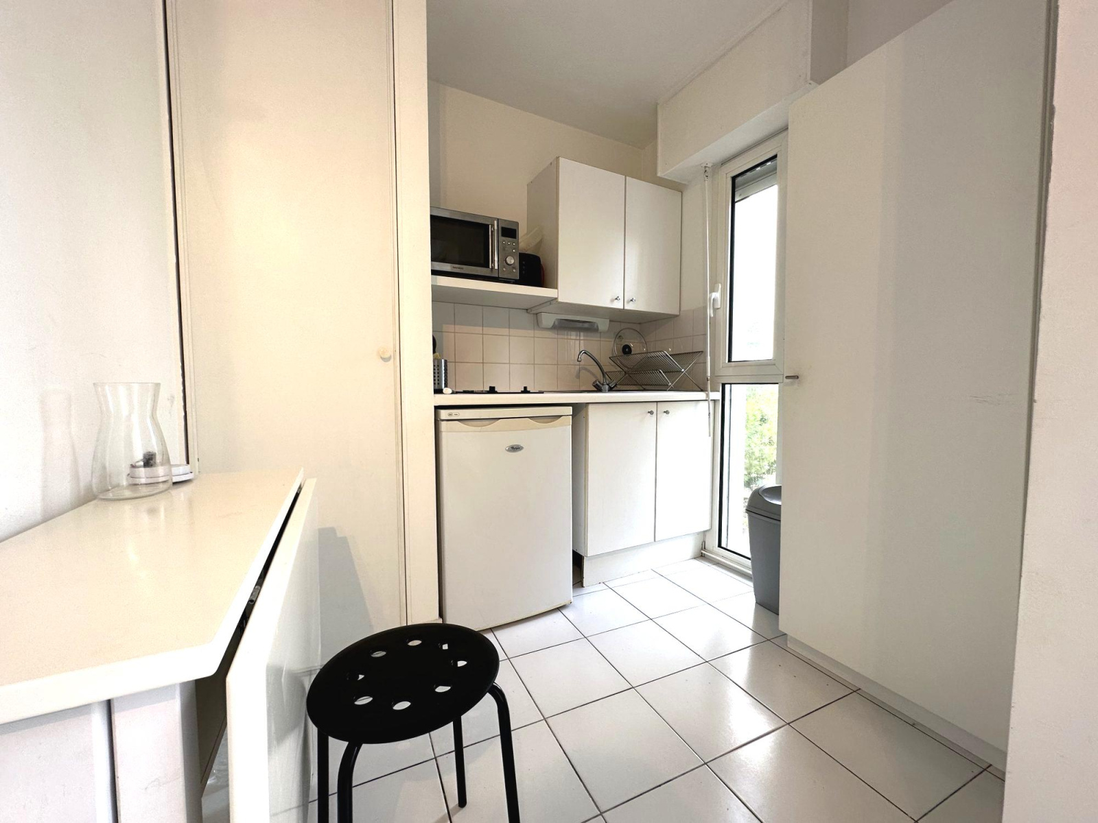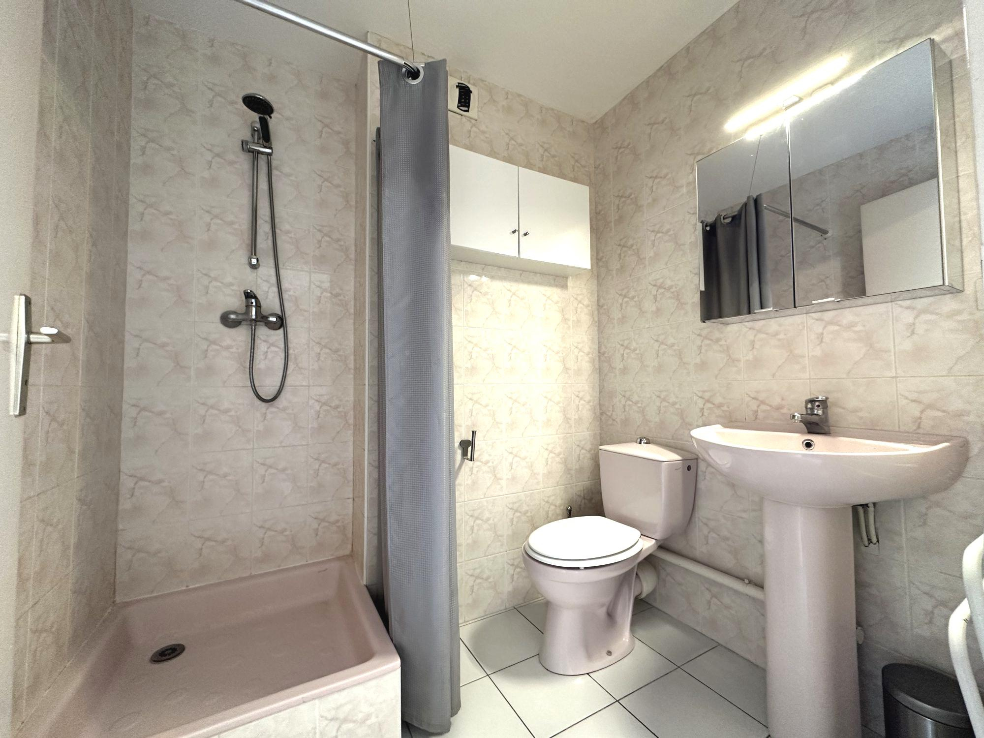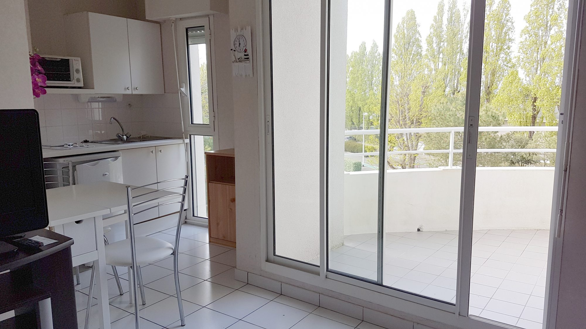 LA BAULE proche Plage Benoît et port du Pouliguen : Studio entièrement refait de 17,22 m2 avec terrasse, aménagé et équipé, au troisième étage avec ascenseur, sans vis à vis, avec stationnement. - une pièce de vie ouverte sur la terrasse - un coin cuisine équipée - une salle d'eau avec WC Parking extérieur privé Local à vélo. A voir