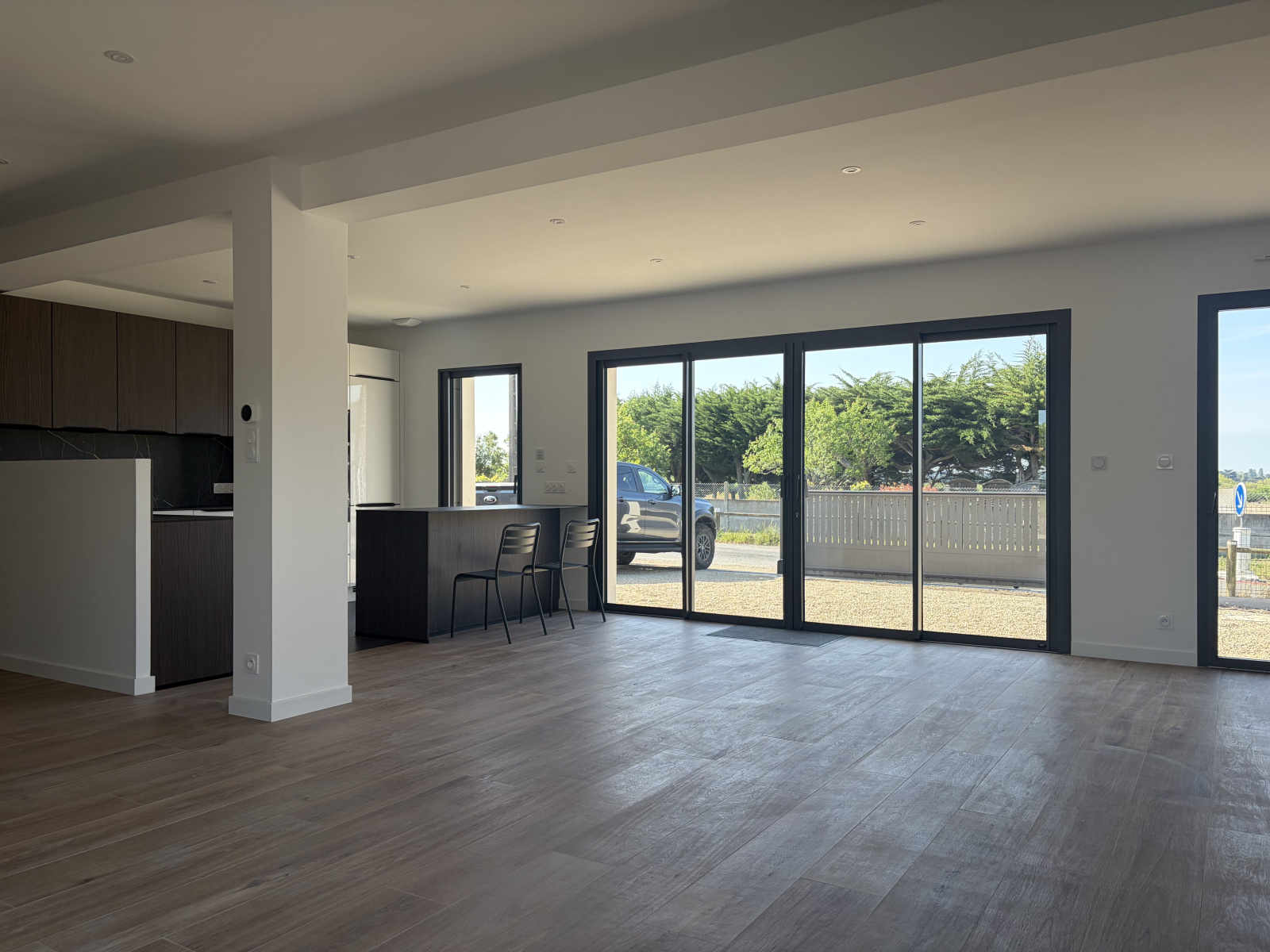 - Un spacieux salon séjour traversant et très lumineux offrant une magnifique vue sur la parcelle et son environnement naturel.