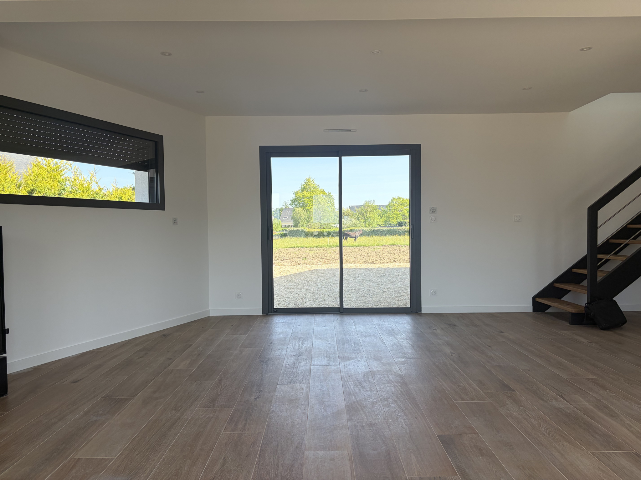 Edifiée en 2026, cette maison neuve de 134m2 ( 162m2 au sol ) présente des préstations remarquables, et un environnement très agréable de part sa parcelle jouxtant une clairière ou s'ébattent quelques chevaux,